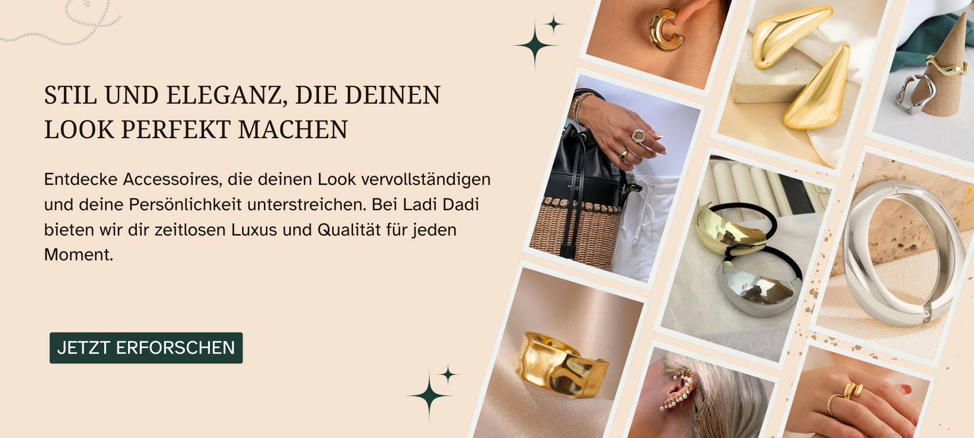 Wir von Ladi Dadi haben es uns zur Aufgabe gemacht, Menschen zu befähigen, ihren einzigartigen Stil durch hochwertige, elegante Accessoires zum Ausdruck zu bringen, die ihr Selbstbewusstsein und ihre Persönlichkeit unterstreichen. Wir sind bestrebt, eine große Auswahl an sorgfältig gefertigten Stücken anzubieten, die jeden Geschmack und jeden Anlass bedienen.